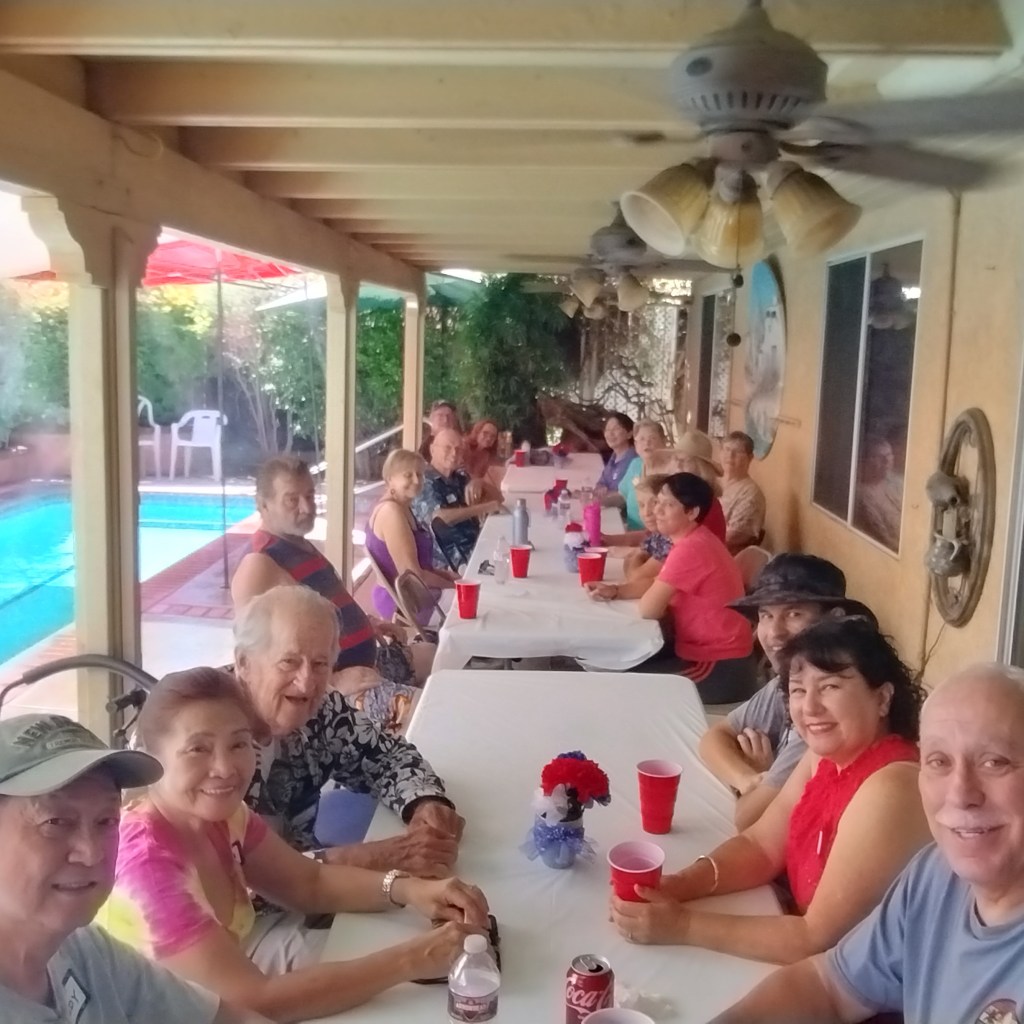 We had a terrific time at our annual Serenade July 4th Celebration Potluck! For the first time, we held an early evening celebration in a gracious neighbor’s brick wrap-around front patio. It was lovely — we were surrounded by flowers and succulents!