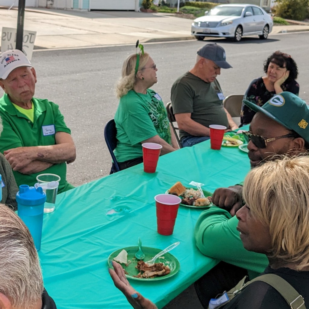 In 2022 we had a block party in May, then a July 4th celebration, a Labor Day party around a pool, a Halloween potluck, a Veterans Day Neighborhood Walk, Christmas caroling, and a New Year’s Eve party.
